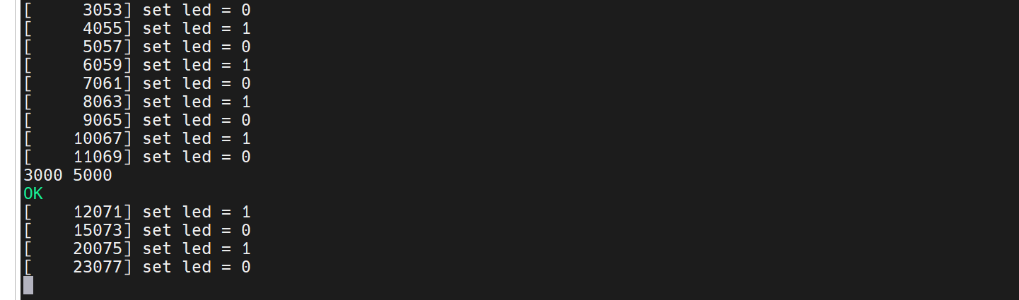 接下来,我们动手写一个自己的 blink。具体目标是:LED 默认以 1s 亮、1s 灭的频率闪烁;用户可以通过串口指定 LED 的亮、灭时长。